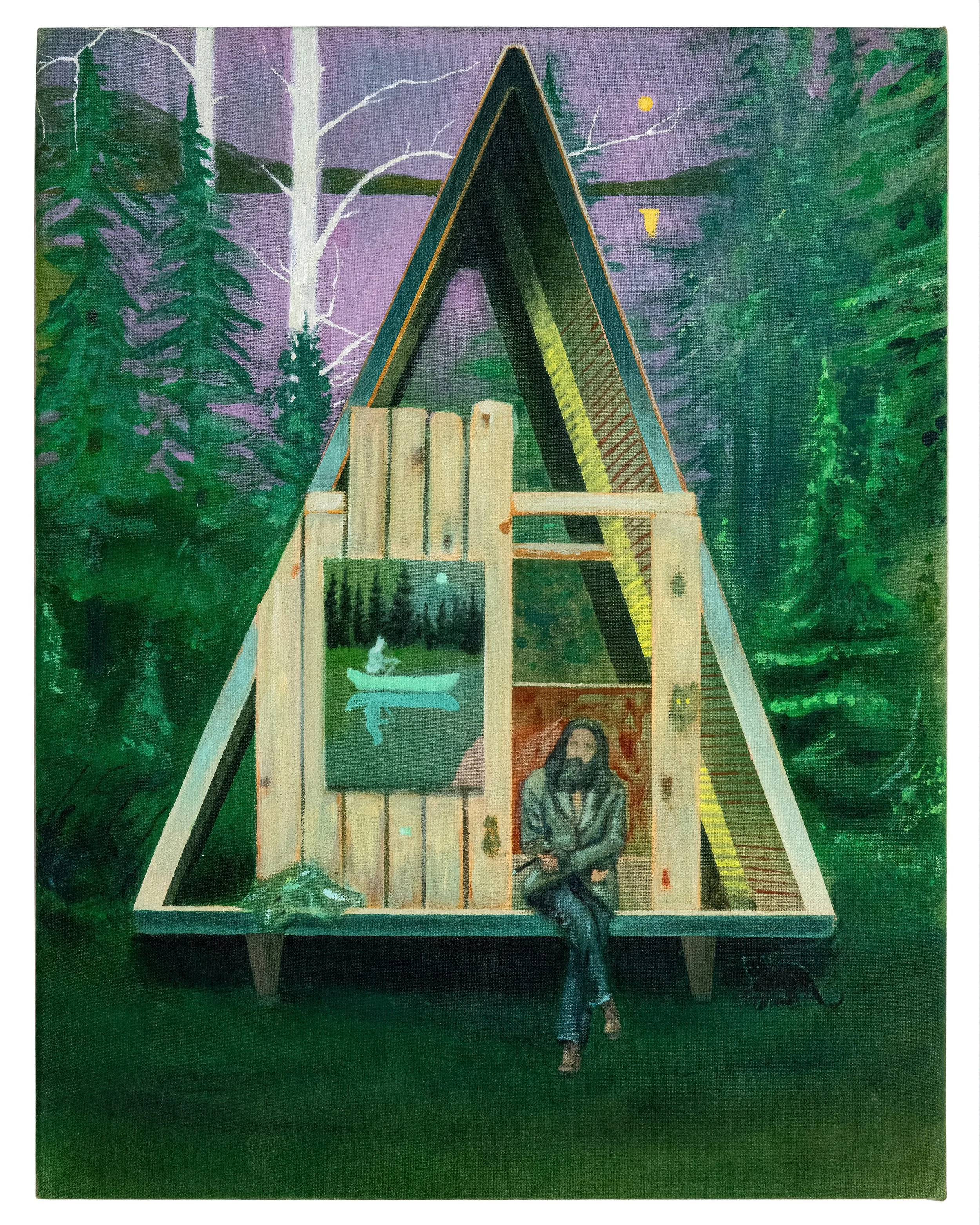 “Painter” (Bark at the Moon) 14x18 in. Acrylic and oil on linen, 2025