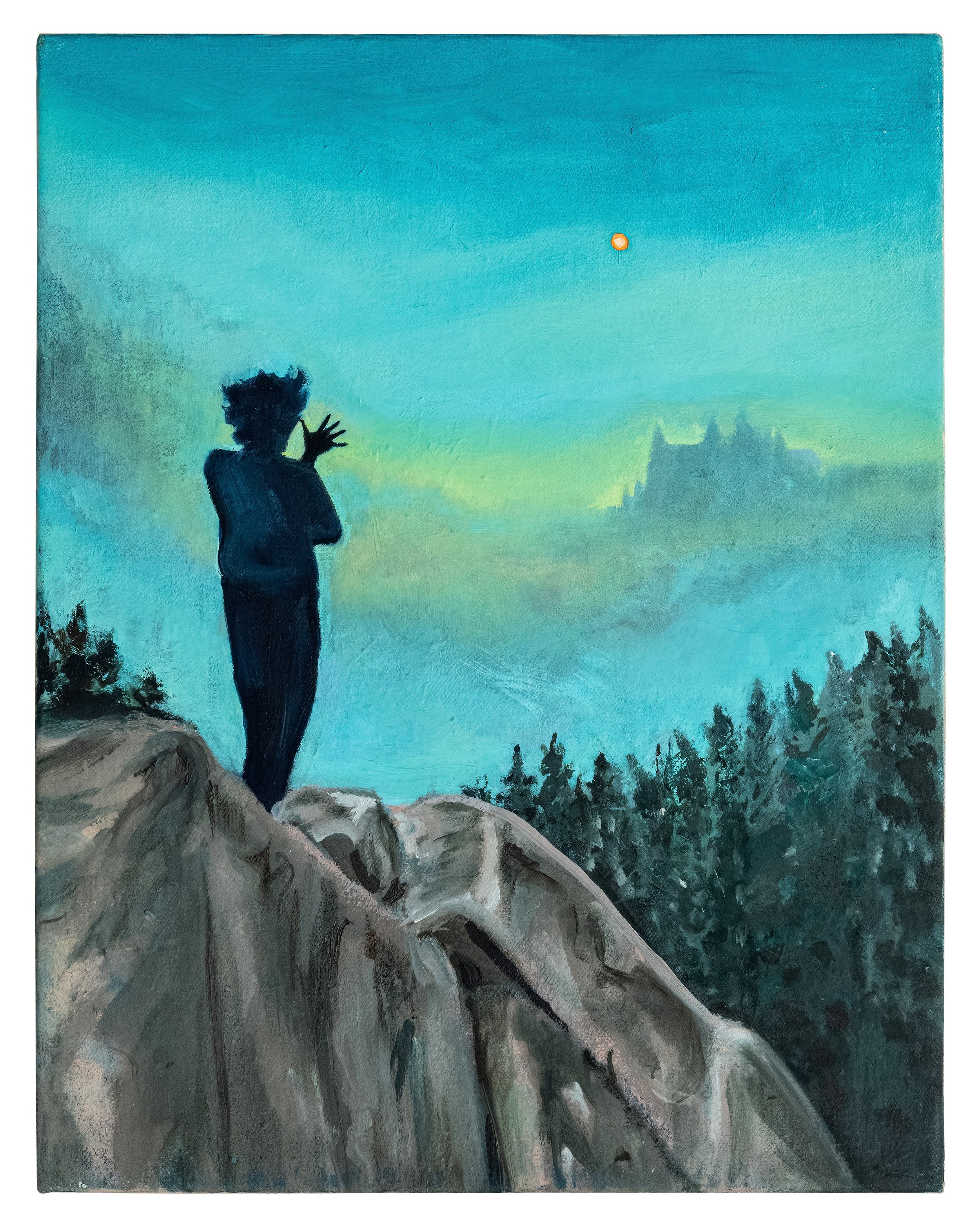 “Orange Skies” 11x14 in. Acrylic and oil on canvas, 2025